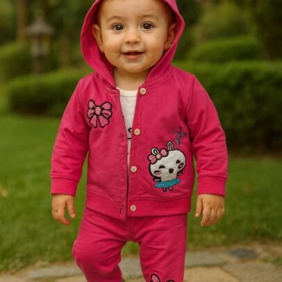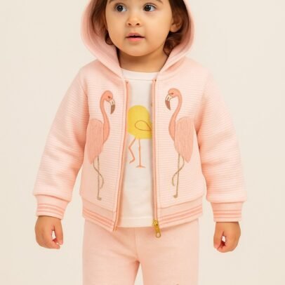 Kids 3pc hooded upper dress -Baby girl printed inner dress