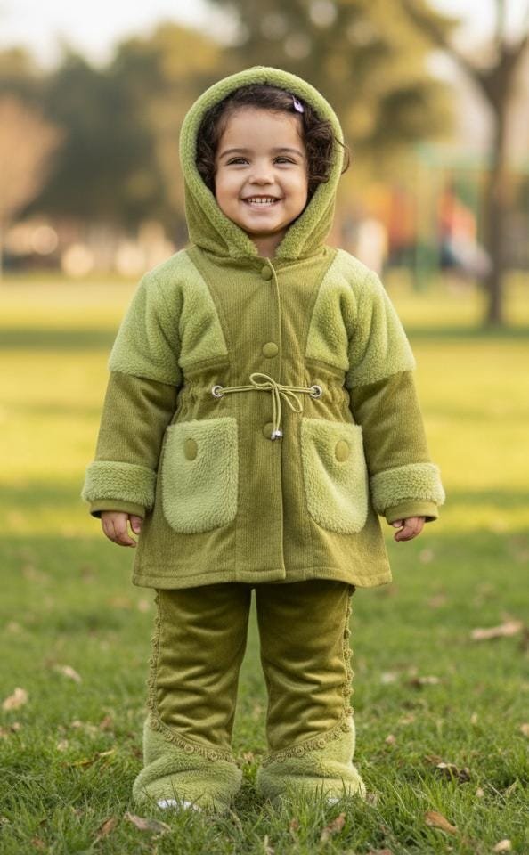 Cozy and stylish girls’ winter flurry dress made with soft, warm fabric and cute fluffy detailing—perfect for chilly days with a fashionable touch.