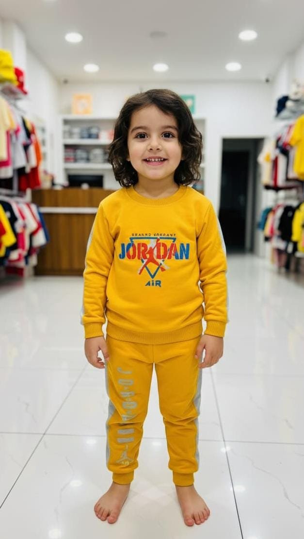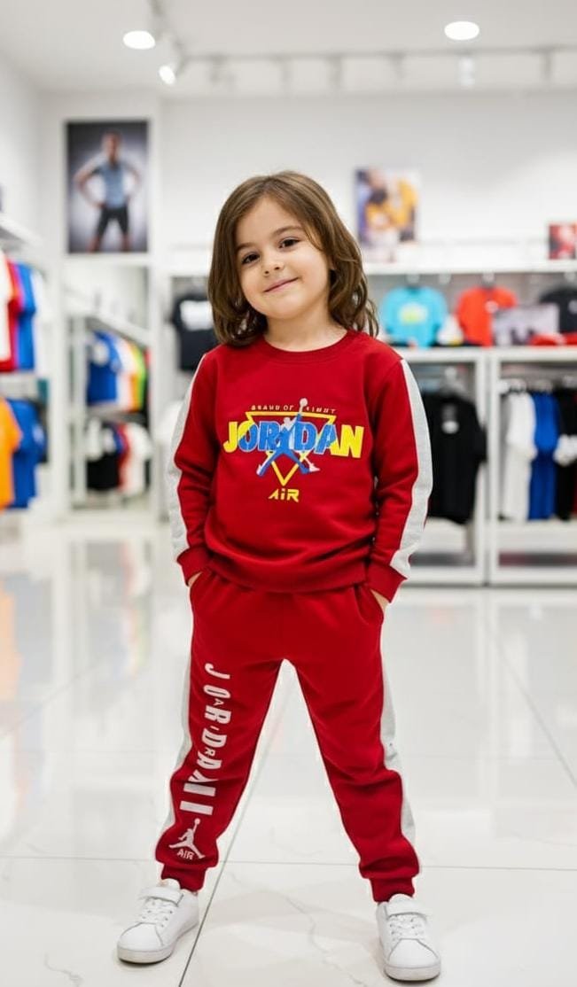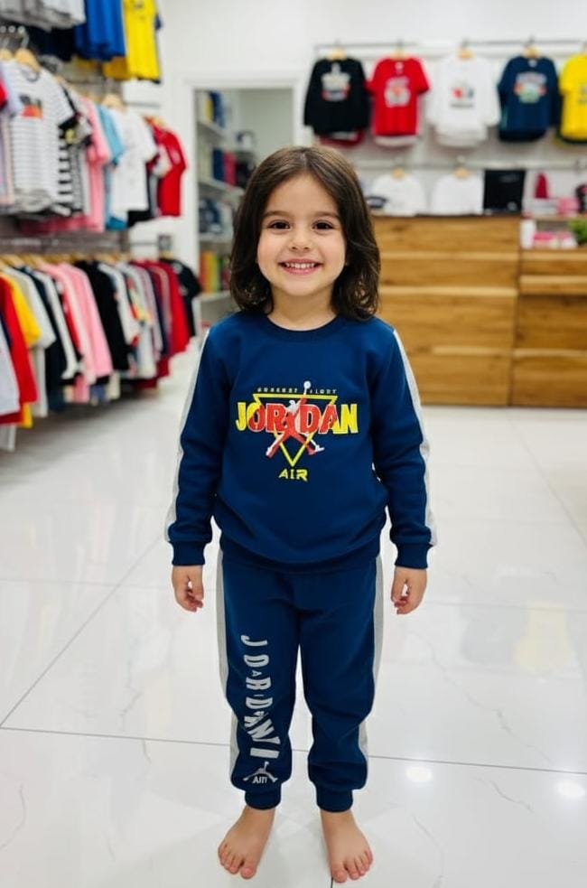 Stylish kids tracksuit with trendy Jordan print. Soft, comfortable, and perfect for daily wear, sports, and outings