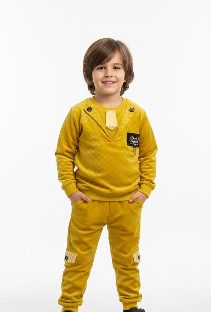 Stylish baby boy velvet sweatshirt paired with matching velvet pocket-style trouser. Soft, warm, and perfect for winter comfort.