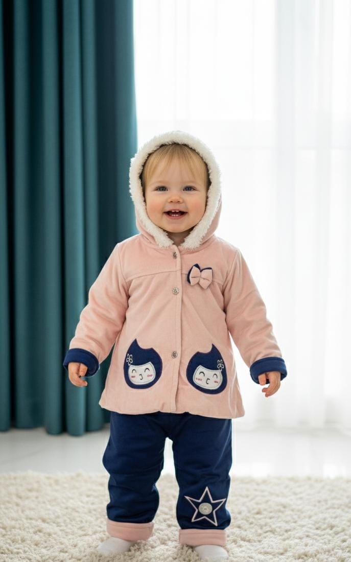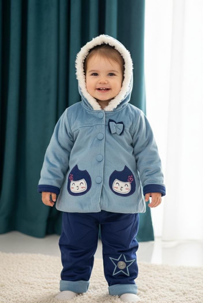 Elegant velvet hooded dress featuring delicate embroidery, designed for a warm, stylish, and classy winter look.
